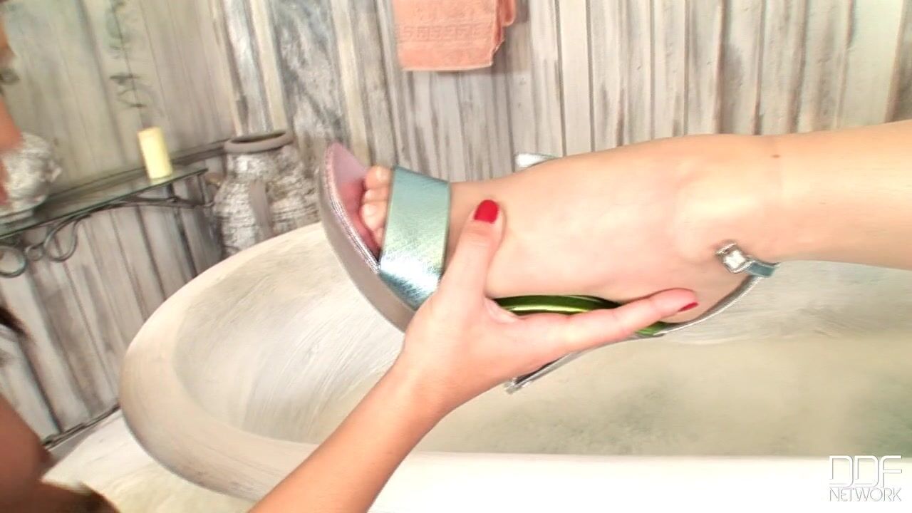 Today we have a hot serving of pantyhose porn crammed with all the foot fetish, toe sucking, and lesbian foot play you could ask for--PLUS it all takes place in an old-fashioned stand-alone bathtub and is climaxed by blasts of wild peeing! See those Hungarian dolls Mya Diamond in her animal print pantyhose and Lepidoptera in her nude tights as they play around in the water. Taking off their high heels, they get their nylon-sheathed feet wet, then worship each others legs and peds. Brown-eyed wild girl Mya is the more aggressive, kneeling in the tub as she licks her friends gams and pours water all over them with a ladle. The ladies keep their pantyhose on throughout this fetish XXX video as they sit in the tub, rubbing their soles and toes together. Lepidoptera soaps Myas size 6.5 feet and rinses them off, and Mya returns the favor with Leps size 7.5 beauties. Our DDF cameras come in close to capture all the sole soaping action. Then, after all this scrubbing in pantyhose, Lepidoptera (whose tights get ripped at the crotch) lets loose with a huge stream of pee all over Myas foot, which she then laps up! Kinky gal!, 03/05/2009
