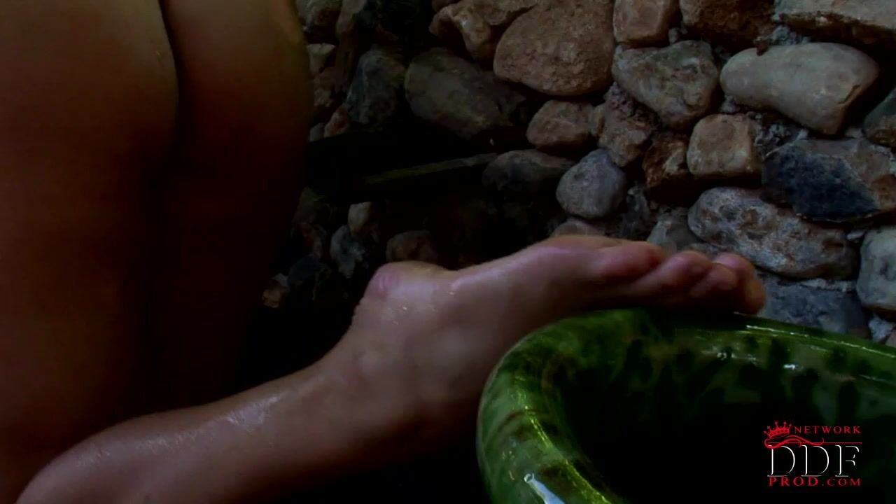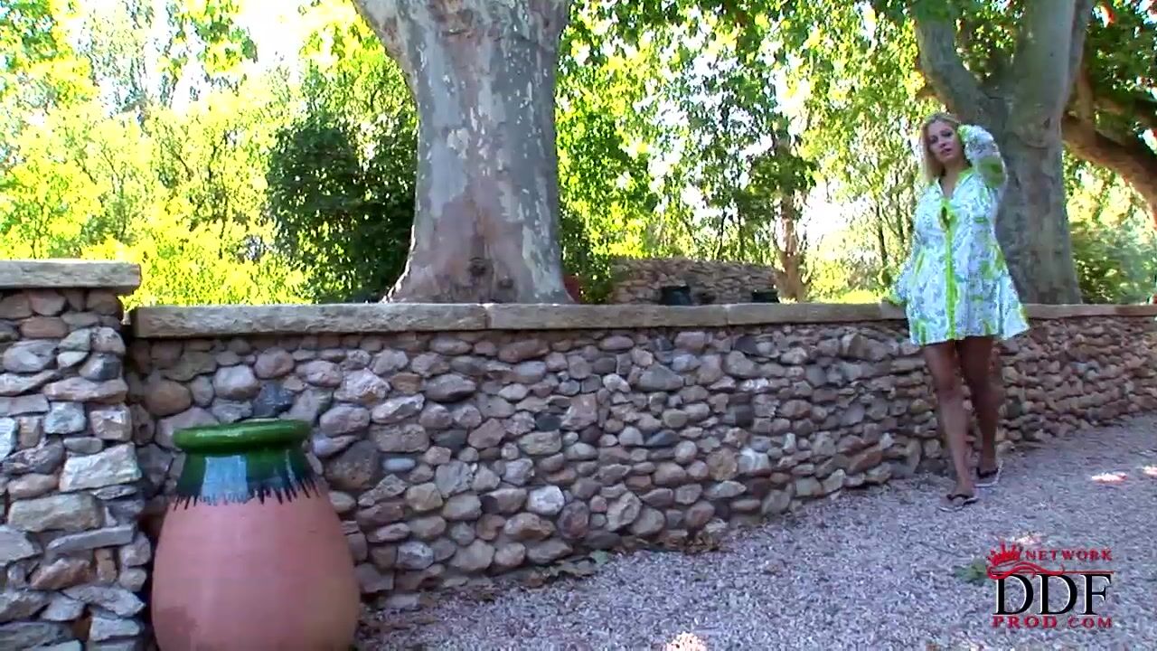 Gorgeous blonde Jenny McClain is back and looking more sensual than ever. She`s dressed in a light green dress and flipflops . Soon she gets naked and massages her feet and toes near a cool pool. She pays extra attention to her sexy legs and feet caressing them with passion., 10/14/2008