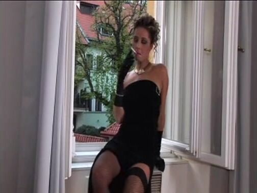 Sitting at the window enjoying the afternoon sun, Mistress X feels the urge to relieve her bladder. Not wanting to bother with a walk to the bathroom, she lifts the hem of her dress and launches a gushing hot stream onto the wooden below her. Returning back to the window she celebrates her relief with a cigarette. Gazing at the sprawling puddle steaming liquid beneath her she thinks, no need to worry about the mess her slaves will clean it up., 05/21/2008