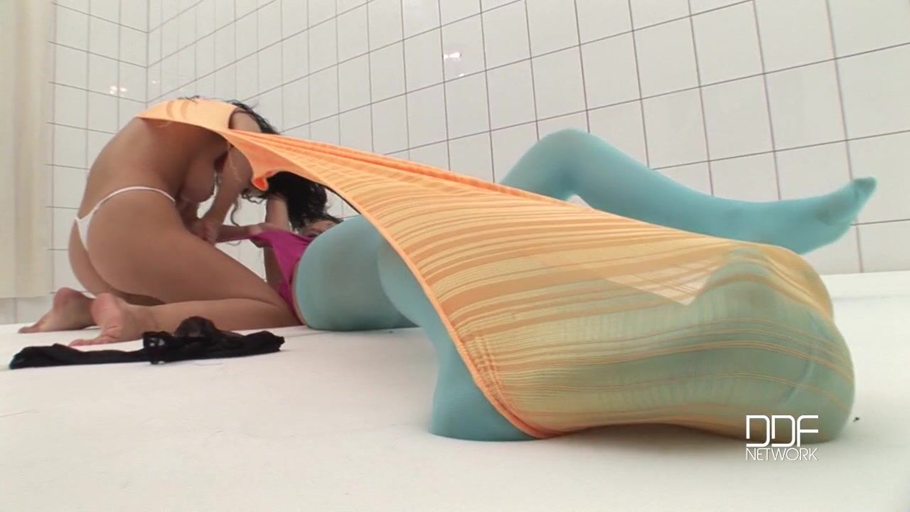 Brunette Sierra and blonde Chrystine meet on the mat to settle their grudges (whatever those may be!) in a session of pantyhose wrestling. Clad in colorful tops and tights, they grab their hair and rip their clothes as they struggle and clinch. No girl maintains the upper hand (or is that upper foot?) for very long, and maybe thats the point as they both get to bite on their nylon-sheathed peds, sit on their faces, pull pantyhose this way and that, and tussle in a very unladylike fashion over the mat and against the walls. Chrystine kicks Sierra but then the brunette overpowers her and rips Sierras sky-blue hosiery off her feet. Sierra jams her sole against Chrystines face, but the blonde manages to get out from under to bite Sierras toes and heel. Youll see lots of pantyhose with tears and runs--and the thong panties underneath--as the gals grope toward victory. The more they tussle, the more naked they become. Their teeth gritted in fun fury, their legs and feet get tangled up in shredded hosiery. Sierra rides on top of Chrystines back but then blonde clamps her between two legs. Toes wiggle near our own faces as the outcome is unclear while the girls battle with endless strength and dedication, until their panties finally come off and its down to the wire to see who will triumph. Drop your pants, gentlemen, and bet with your boners about who will ultimately win!!, 06/08/2008