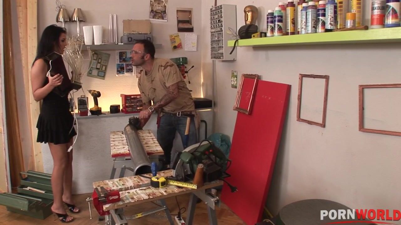 Big boobed brunette Jasmine popped in to see her odd job man Greg as she had a couple of things that needed looking at. Well, all he could look at were her large jugs and soon the flirting had lead to a little bit more as Greg fondled Jasmine's bosom and she freed her breasts from her clothing. Both were half undressed in no time as Greg feasted on her tits and she sucked hungrily on his cock. She was ready for Greg to penetrate her moist lips and he didn't need a second invitation. After a while his dick, slick with pussy juice, was pumping into her tight ass before she tit-wanked him to a creamy orgasm all over her boobs!, 12/04/2007