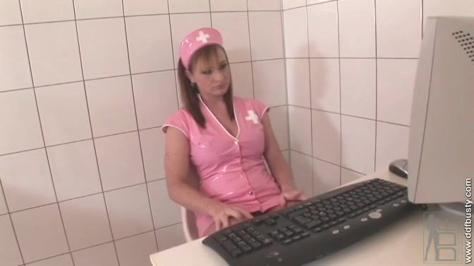 Busty nurses playing with themselves is a common fantasy. Here we bring it to life! See Mischel in her sexy outfit with her tits hanging out. Soon she is pulling, tweaking and licking her nipples as her large breasts flush and her buds harden. Now she is feeling the juice in her pussy she reaches down. Soon she is probing and stroking with her fingers until she finds and instrument perfectly shaped to use as a phallus. Next thing she is alternating it between her tight ass and wet slit as she pleasures herself in the surgery!, 01/01/2007
