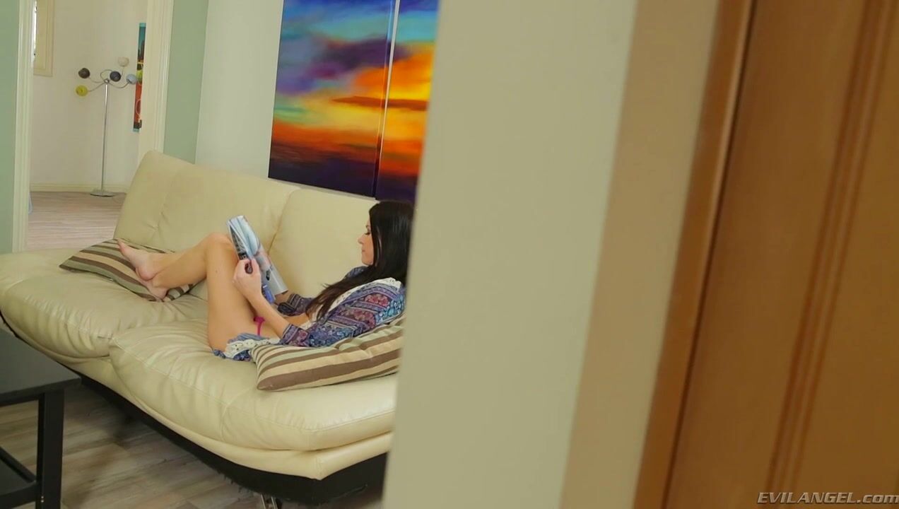 Kevin Moore's POV footage shows longhaired, leggy MILF India Summer -- his stepmom -- in revealing skirts and stilettos as he describes his habit of perving on her. She catches him spying her naked form in the bathroom, dick in hand, and angrily threatens him, but he peer pressures her with incriminating photos. India makes dark-eyed contact with the camera in a POV-style blow job as she tells 'you' what a filthy, little pervert stepson you are. Stroking, slurping, licking balls, India orders you not to cum on her. The wicked stepmom teases you with spread, shaved pussy you'll never get. Cum suddenly slops her face. 'You are so grounded,' fumes India. 'Take your photos and go fuck yourself.'