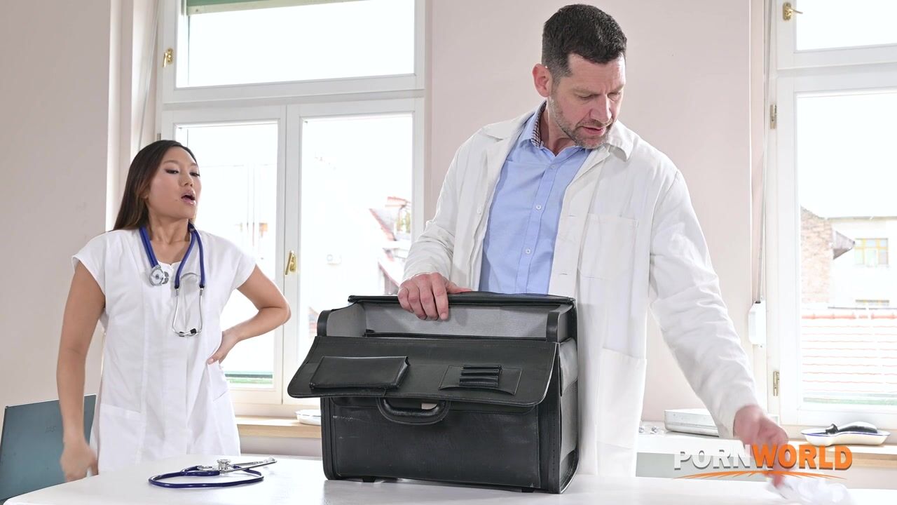 Naughty Asian nurse May Thai is at the clinic and gives her friend a call to tell her all about a hunky new doctor she has started working with. She gets so turned on that she starts rubbing her pussy through her panties and quickly hangs up the call to continue pleasuring herself. May uses her fingers to make her pussy soaking wet and after fingering her snatch, this sex-crazed slut fucks and sucks a glass dildo. She hears Dr Snakes calling from outside the room and quickly fixes herself together before his appointment starts. He finds her panties and questions her before they embark on a work fling! Dr Snakes takes out his huge cock and May sucks him off while he lays on the examination table. This petite Asian gets fingered and fucked in multiple positions before she not only offers up her ass but also takes a mouthful of cum to finish!, 03/25/2024