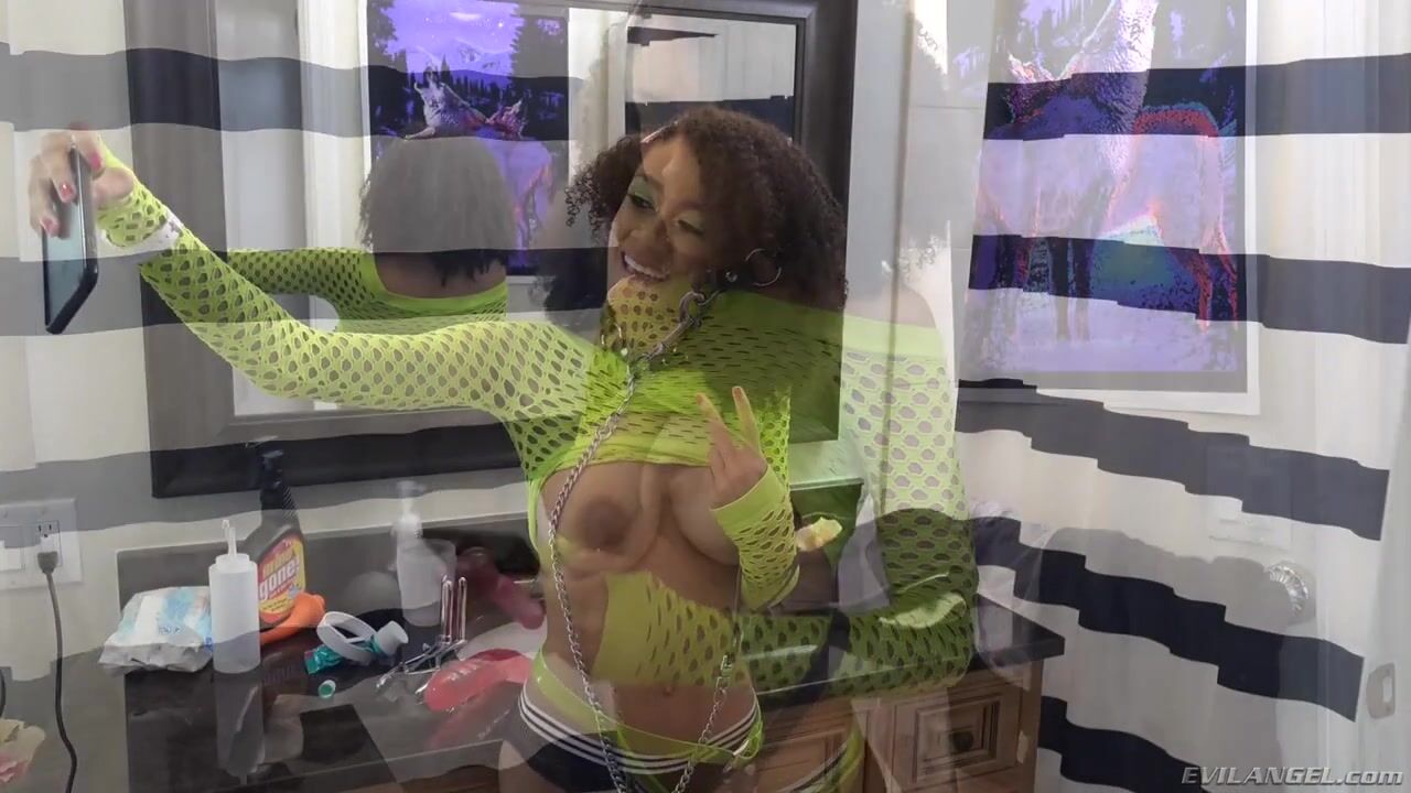 Description: Black beauty Ariana Aimes is a young, oversexed cutie with hefty knockers and a cute Afro hairstyle. She connects with Bryan Gozzling on a dating app and heads to his place in a wildly revealing outfit. Ariana kneels for a messy blowjob, capturing her drool in a measuring cup. As she wallows in slobber, the deviant director hammer-fucks her hairless cunt. When Bryan squeezes her massive breasts, they squirt milk into her mouth! A passionate interracial date features titty fucking, nasty rimming and a soaking cum facial.