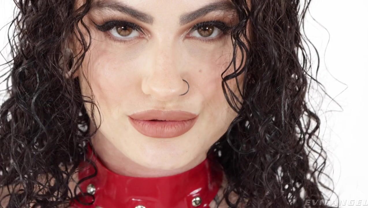 Dark-haired, tattooed Lydia Black's red and black latex fetish gear includes shiny, skin-hugging stockings and garters. High-heeled, lace-up boots complete an exciting look. The camera caresses her kinky outfit. She spreads her fur-topped pussy and thick rear cheeks and fists her lube-slick butthole! Pale Lydia shoves a jumbo black dildo up her ass. Top stud Mick Blue enters frame naked, his big cock erect. He grips her curls and fucks her throat; the lush-lipped girl gives a drooling, hand-stroking blowjob. She fully deepthroats his huge meat, slobber soaking his balls. Mick goes straight to anal, porking her greased sphincter. Lube-drenched flesh slaps through an intense buttfuck. Lydia gives ass-to-mouth head. Aggressive, doggie-style rectal reaming makes her gasp, whimper and bellow dirty talk. Her asshole gapes. She wetly licks his asshole; they follow the lewd rim job with a tasty kiss. Mick and Lydia share more sodomy in various positions. He rails her pussy; she loves tasting her cum on his meat. Lydia kneels for a cum facial, and she swallows semen gratefully.