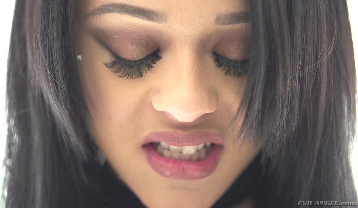 Petite, exotic Holly Hendrix likes 'feeling used like a little toy.' Dominant stud Ramon Nomar and director Toni Ribas roughly grope, choke, spank, slap and spit on Holly in a ruthless threesome. They drench her in oil from tiny titties to pert butt and go straight-to-anal plowing. Double penetration comes with both ass-to-mouth and pussy-to-mouth deep-throat face fucking. Holly's almost too tight for double vag. But her butthole easily vacuums up the twin tools for serious double-anal reaming! Makeup trashed, Holly sucks feet and squirts girl cum. Toni and Ramon pump thick wads all over her face. She licks pussy juice, semen and slobber from the floor and blows cum bubbles.