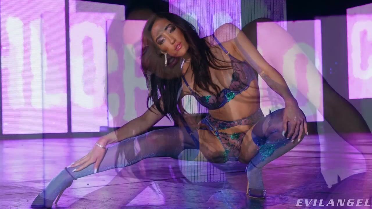 Bombshell beauty Chloe Amour returns to director Jonni Darkko's set for a decadent threesome. The gorgeous porn queen stuns in blue lingerie, strutting on a matching, neon-lit set in stylish hose with sleek high heels. Chloe flirts and poses through a spicy tease. She's excited to play with hung studs Rob Piper, Alex Jones and Hollywood Cash. Chloe treats Alex to a drooling blowjob while Rob sodomizes her. The fellas trade off, hammering various mouth, pussy and asshole, and spanking her booty. Chloe whimpers and talks dirty as big Black cocks cram her mouth. She shouts expletives as Hollywood and Alex treat her to an intense double penetration. The vulgarity continues with ass-to-mouth fellatio, vast rectal gaping and more of Chloe's filthy vocabulary. Chloe goes airtight -- dicks simultaneously stuff her mouth, box and butthole! Finally, she drops to her knees for a round of messy cum facials. She expresses her gratitude with sperm oozing down her cheeks, and a slow-motion replay details the climax.