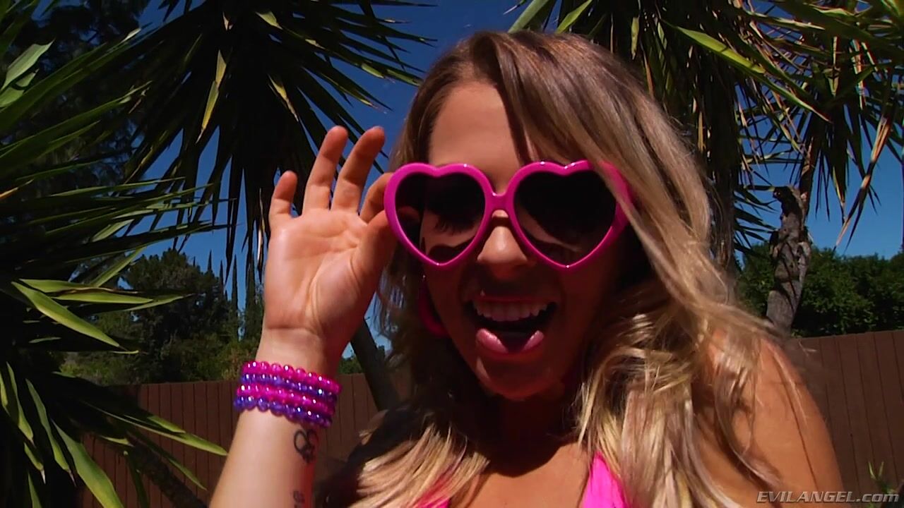 Tanned blonde Zoey Monroe can't wait to get her asshole penetrated by Dredd's monster black cock. The captivating nymph teases the camera in a tiny pink bikini with matching heart-shaped sunglasses, and then moves indoors to prep her anus with a black dildo. Zoey greets the enormously hung stud with a slobbery, two-handed suck job. Dredd stuffs his thick, throbbing organ deep into her rectum. The boundless beauty flaunts her gaping bunghole, sucks cock ass-to-mouth. Dredd's meat pounds her every hole, and he dumps his jizz on her face.