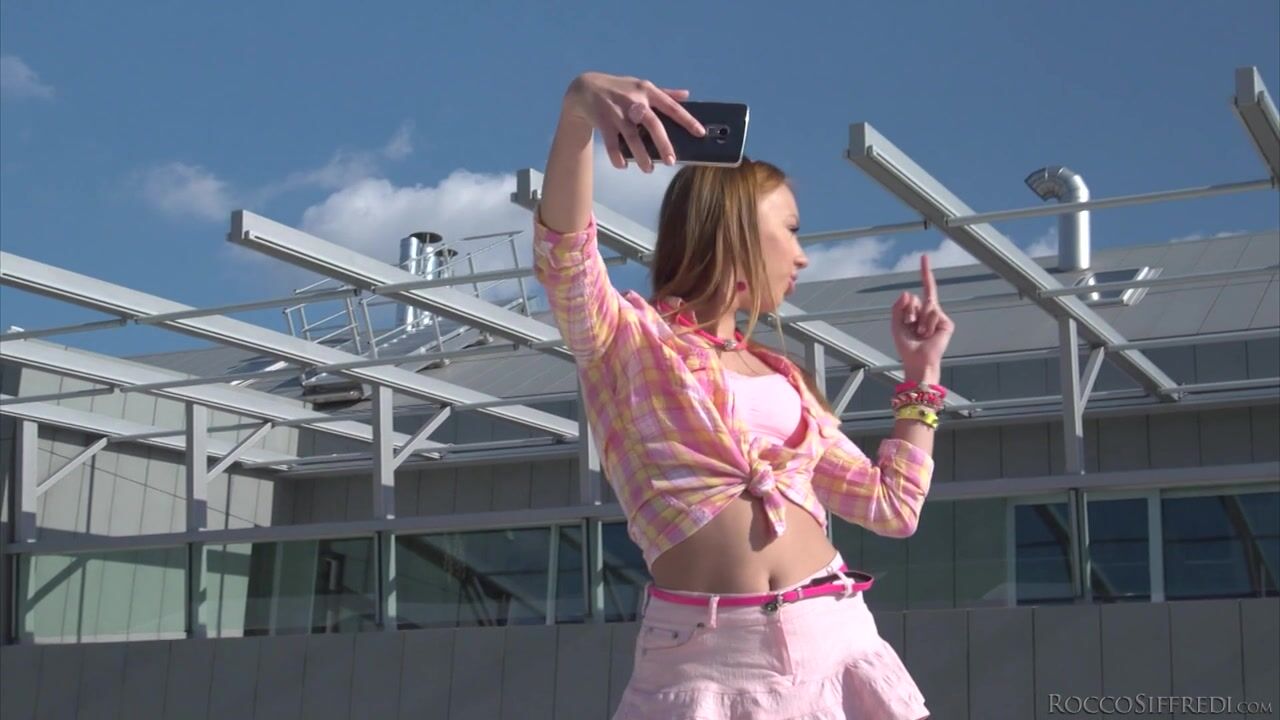 Tall, glamorous MILF Stasy Riviera and hung boyfriend Vinny Star rudely suck and fuck outside. Stasy's teen stepdaughter, Kira Thorn, snaps lewd selfies with the shameless adults in the background! Blonde Kira's bubble butt shows from her tiny skirt. Vinny's belt chokes and whips Stasy! Vinny chases Kira inside and eats her holes as Kira snaps more selfies. They share 69, a straight-to-anal reaming and ass-to-mouth cocksucking. The bitchy stepmother and daughter get bi in a nasty threesome: Stasy rims gaping Kira's bunghole and then Vinny's as he sodomizes Kira. Vinny creams both mouths; the 'ladies' clean cock and each other orally.