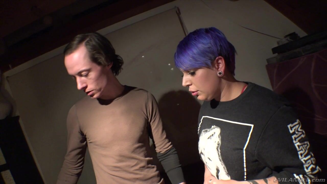 Voluptuous, purple-haired plumper Tori Avano is making a private video for a client. She enlists boyfriend Owen Gray to help film it. Tori models a skimpy pair of crotchless thong panties, stroking her bare pussy and fucking herself using a glass dildo. The busty, tattooed BBW gets her wide ass probed and kneels to orally worship Owen's massive cock. He reams Tori's phat booty hard, making her sphincter gape; she sucks him ass-to-mouth until he splatters her pretty face with goo.