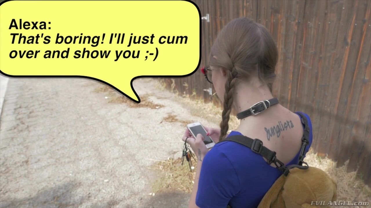 Slender, pigtailed schoolgirl Alexa Nova is a bespectacled cutie in a tiny, pleated skirt. After exchanging flirtatious texts with stranger Bryan Gozzling, the sexy slut heads over to his house for a casual hookup. He chokes and manhandles Alexa, removing her butt plug and fingering her pussy to a juicy orgasm. As her mascara runs, Bryan jams his cock down her throat, nastily reaming Alexa's tender butthole before splattering her face with a creamy, thick blast of semen.