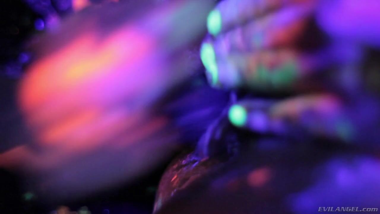 A quartet of gorgeous young lesbians -- Abella Danger, Dana DeArmond, Karlee Grey and Jada Stevens -- has a kinky party in the dark, decorating each other's nude body with luminescent paint. Faces, tits and asses gleaming with color, these fun-loving sluts get messy, licking butt cracks, sucking feet, gagging on huge dildos and fucking each other with strap-ons! Smeared in a cool alien glow, the partying girlfriends bring themselves and one another to climax using skilled tongues, fingers, vibrators and toys.