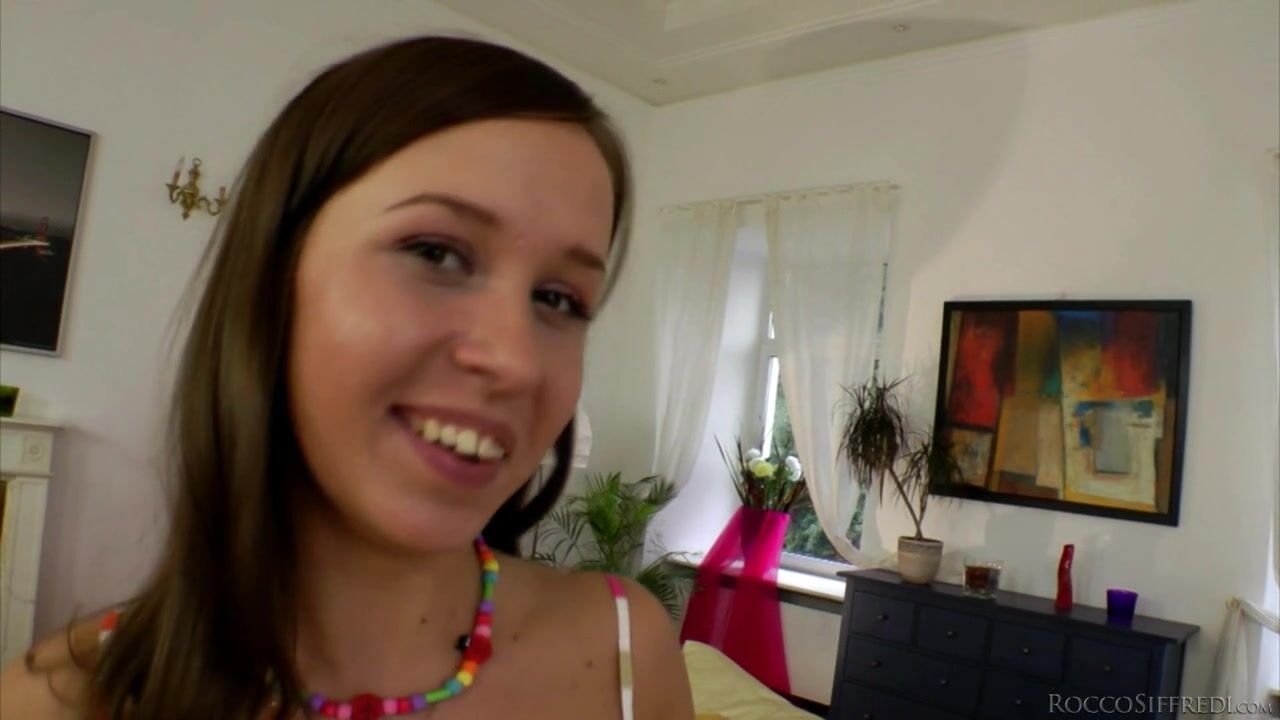 Twenty-year-old Russian cutie Grace meets legendary Italian director Rocco Siffredi for a POV-style interview and striptease. The gorgeous girl spreads her firm ass cheeks, letting Rocco finger her tight butthole, and she sucks his finger clean. Next, Grace drops to her knees for a sensuous blow job, worshiping the older man's ball sack. Finally, Rocco's enormous prick reams this adorable slut's every hole.
