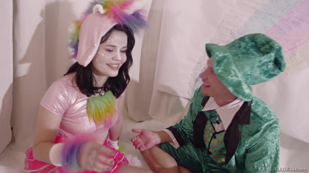 Description: Costumed as a unicorn, gorgeous, young Yhivi demonstrates to leprechaun Bill Bailey her special power to fart magical rainbows. Sure enough, when he pours glitter into Yhivi's anus, she emits a sparkly cloud of anal magic! Next, the adorable storybook character swallows Bill's huge, throbbing boner in a wet, sloppy blow job. She takes his fingers and cock inside her tender rectum until it gapes. After an ass fucking of mythical proportions, Yhivi laps up Bill's hot semen.