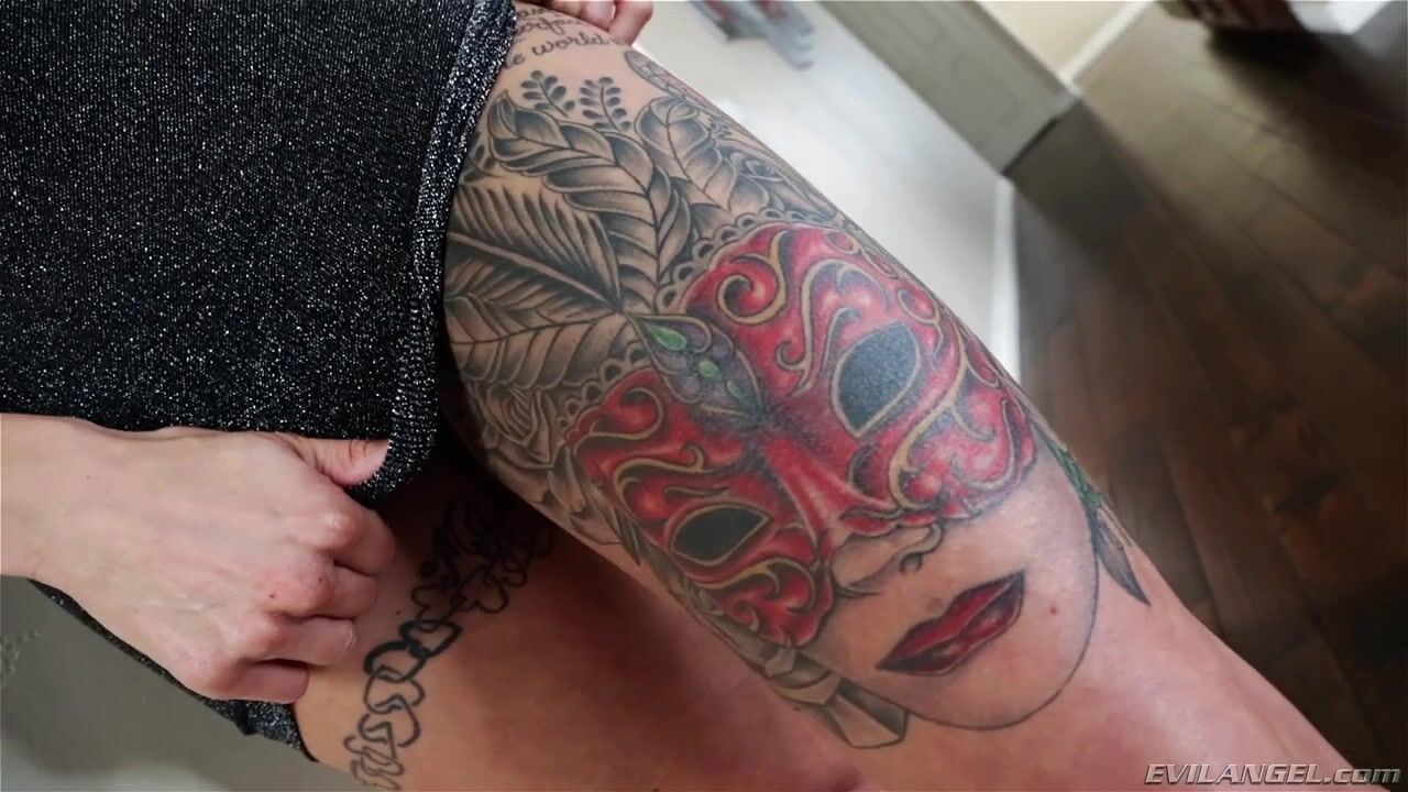 With dramatically tattooed alt-girl Anna Bell Peaks, it's hard to say which is more striking: her wild ink, her gigantic rack or her gorgeous face. The stylish beauty sports hair dyed hot pink, tight dress and stiletto heels. She and director/stud Lexington Steele are hot for each other; he sucks her pierced nipples, and his thick prick is in her shaved gash before his pants or her panties come off. She's thrilled -- 'Oh my God, I'm so wet!' She tastes her juice on his massive meat and takes a slow ride, boobs bouncing. Lex oils up the jugs for a titty fuck. Anna loves deep, doggie-style dicking: 'I'm soaked on your cock, it feels amazing!' His colossal prick slaps her clit and bald twat. She worships his balls and he strokes a thick load all over her face.