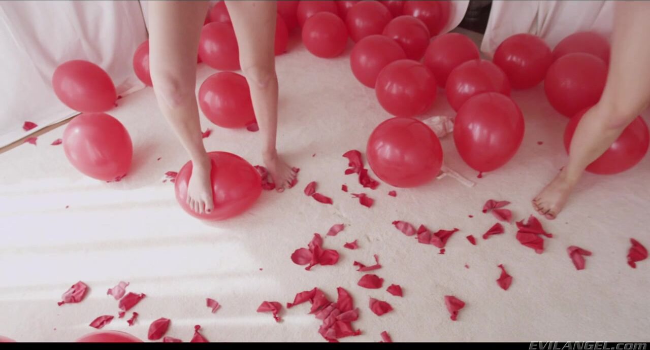 Frisky lesbian sweethearts Sasha Heart and Jade Nile have a new fetish: popping balloons with their asses! These gorgeous girls bounce up and down in their roomful of red balloons, making the inflatables explode with loud bangs. After their kinky foreplay, it's time to bury faces in each other's unshaved pussy. They lick twats to ferocious climaxes... as Jade and Sasha continue squeezing balloons until they pop!