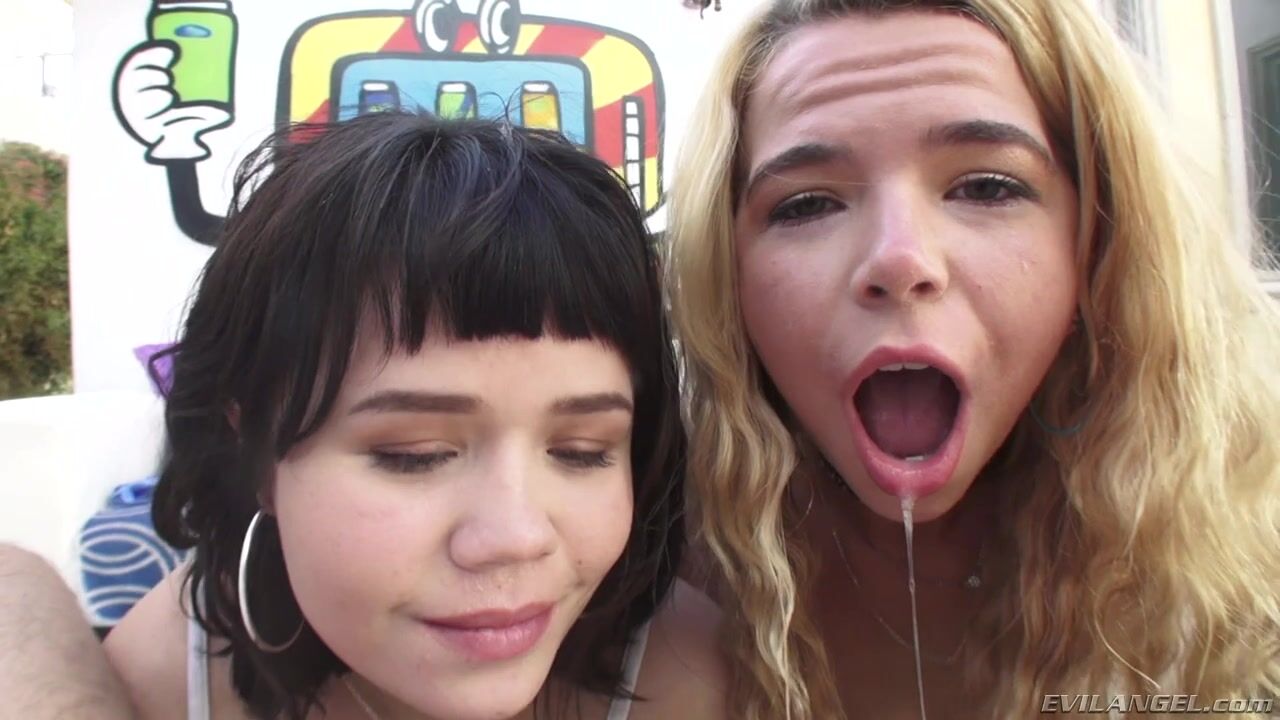 Adorable, all-natural, young alt-cuties Alina West and Yhivi want to make a good impression on seasoned pornographer Mike Adriano. Dressed in skimpy clothes, the petite newcummers pair up on the director's huge cock; dark-haired Yhivi throats his wet shaft while pretty Alina lewdly licks Mike's bunghole. Next, he reams Alina's tight rectum with his massive dick and lets her gorgeous girlfriend help out by sucking ass-to-mouth. When Mike's unloaded his goo, Yhivi swaps the tasty cum with her partner.