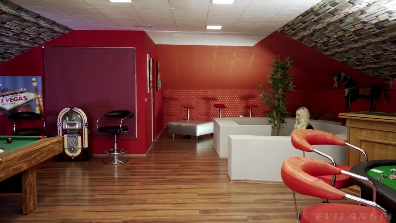 Sexy real estate agent Angie Lynx has big tits and long, luscious legs. Showing a house to director David Perry, the blonde temptress leaves her top unbuttoned, flaunting fleshy jugs and cleavage. She offers David a deal on the house if he can beat her in a game of pool, but Angie reneges when David surprises her with his table skills. The sneaky babe opens her blouse the rest of the way, offering a different kind of deal that David quickly accepts. The lewd duo makes out aggressively. Angie drops to her knees to suck David's throbbing tool. She slobbers as David drills her throat, and then sits spread-eagled on the pool table. David's big cock pummels her soaking wet slit, to start. He soon fingers her butthole, preparing for hard sodomy. Wild anal action includes ruthless backdoor reaming; a lewd, ass-to-mouth blowjob; and impressive sphincter gaping. Nasty Angie rims David's bunghole, rides his thick rod, and finally opens wide for a messy cum facial.