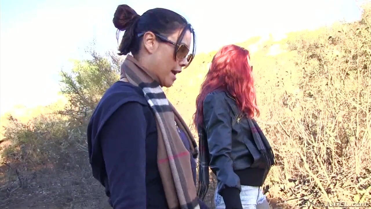 Provocative, beautiful performer/director Dana Vespoli and natural-bodied, Texas redhead Ashlyn Molloy hike a trail holding hands -- Ashlyn sports leather jacket, tight leggings and shades, while Dana wears wintery workout gear. The ladies exchange easygoing stories: Growing up, Ashlyn was attracted to women, but isolated in a small town. She says she was the go-to girl for guys looking to ditch their virginity! Dana recalls her first experience with a trans-girl. They find a picturesque wilderness spot in which to play under the sun amid vegetation and boulders, just out of view of some distant hikers. Dana sucks Ashlyn's natural tits. The girl's eat each other's hairy pussy. It's cold out, so they get straight to the business of getting each other off. And they wind down with sensual mouth kissing as they dress.