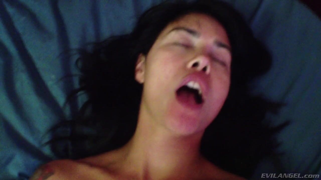 Porn does not get any more real or naturalistic than this handheld camera phone footage of tattooed MILF Dana Vespoli and friendly stud-next-door James Deen. There's no set-up or make-up, just two casually conversational pornographers doing what comes naturally on their own time. And it appears that Dana gets horny on her period -- a tampon string hangs from her pussy as James fucks her asshole (with a wisecrack about a novel sort of 'DP'). Dana digs a finger up her butt and blushes to orgasm as James sodomizes her. Preceding that is a sensual blow job/hand job with ball lapping, and Dana spit-lubes her anus. She tastes her cum on her fingers and fists her own mouth.