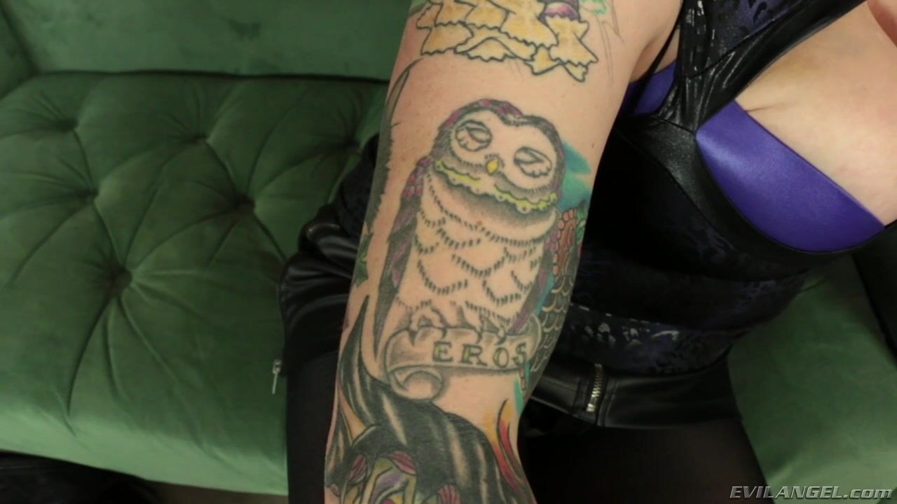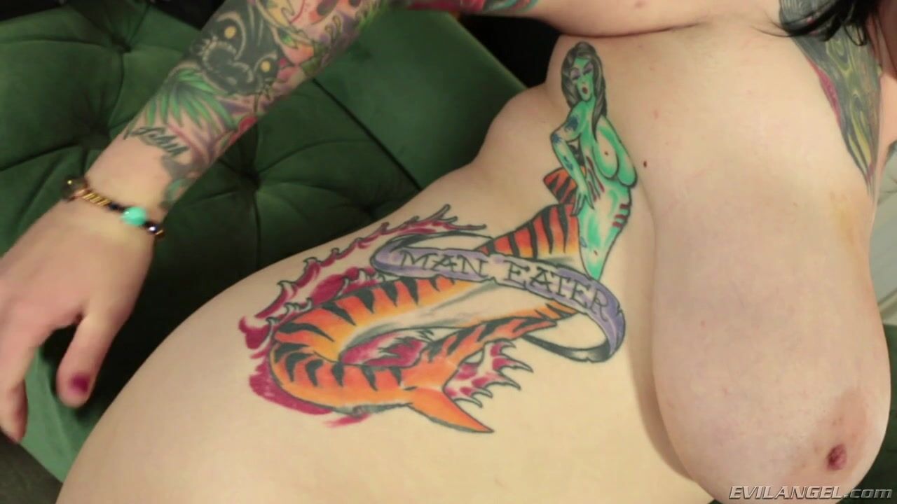 Dark-haired, colorfully inked and pierced, Scarlet LaVey is a BBW alt-girl. In dramatic eye make-up and a leather dress, the 22-year-old from Florida displays her monster cleavage and talks about her busy sex life. Visiting fetish director Aiden Starr for a casting couch audition, Scarlet unleashes her epic fun bags. She massages and claps her jumbo jugs, and the voluptuous cutie spreads and fingers her shaved, tight pussy. When Scarlet isn't buzzing herself extensively with a multi-speed vibrator or fingering her shaved snatch, the horny swinger is burying her face in her own cleavage.