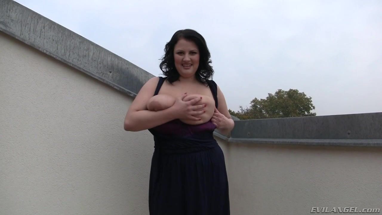 Full-figured brunette Barbara Angel is a curvy mound of all-real boobs and cleavage. On a rooftop with a castle on the horizon, her monster melons spill from her low-cut dress, displaying thick nipples and massive areolae. She smashes her tits together and sucks her own nips. Inside, she flaps her fleshy fun bags and masturbates to seduce black Latin stud Franco Roccaforte. Barbara kneels for a blow job/titty fuck; Franco plows her bosoms and dicks her mouth upside-down. As Franco screws her pussy, her bust pummels his face; he and Barbara each suck one huge knocker. Her udders sway as she's plowed doggie-style. She rides cock, covering him in breast meat. Franco blasts her rack with a sloppy load and Barbara massages the mess into her sweaty boob flesh.