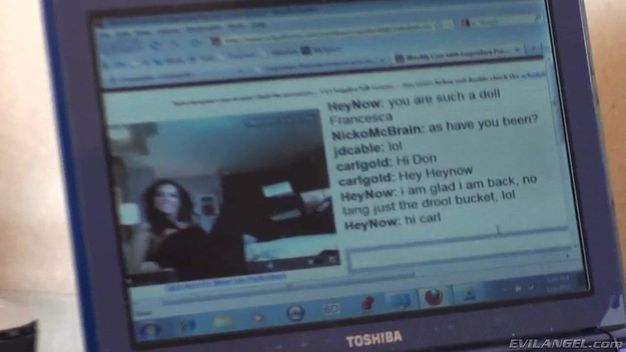 Glamorous American Latina MILF legend Francesca Le is in her hotel doing a live cam show for some fans. Busty supermodel Veronica Avluv shows up late, and decides to make up for her tardiness as Francesca's husband, Mark Wood, films the action. In no time, Francesca is worshiping the brunette bombshell's big knockers; the ladies take turns slurping on each other's slippery twat. Francesca buzzes the tall beauty's sweet pussy with a vibrating massager while Veronica squirms. Then both sluts suck Mark's big boner and ride him until he delivers a load of gooey cum for a passionate lesbian kiss.
