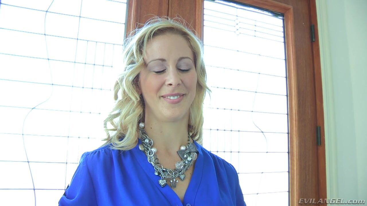Hot director Dana Vespoli loves using her camera to capture her lesbian conquests. The tattooed auteur films a sensuous POV scene with mature bombshell Cherie DeVille, and this is Cherie's very first experience with an anal strap-on. The buxom blonde crawls onto the bed and does a sultry striptease for Dana, getting on all fours. The director buries her greased-up fingers deep inside Cherie's asshole, then follows by pushing her trusty strap-on dildo into the busty babe's rectum. Soon big-assed Cherie is passionately riding Dana's strap-on dong while fingering herself to an intense vaginal/anal climax.