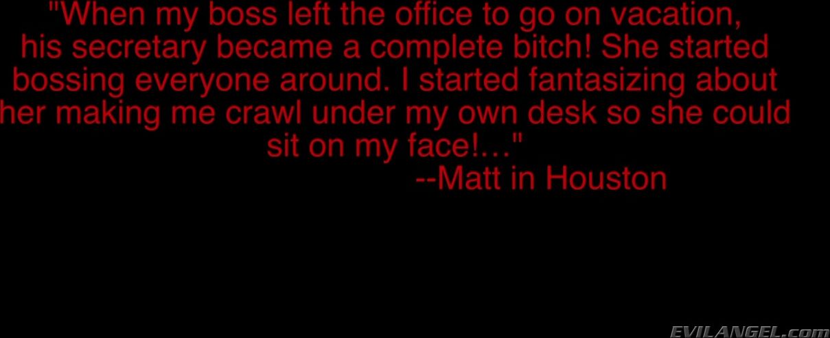 When boss Tom Byron returns to the office, he discovers that his unstable secretary, Tara Lynn Foxx, has been abusing the other employees and making them declare her their 'queen.' His stammering, pathetic attempt to discipline her results in the bitchy blonde overpowering Tom, making him worship her high-heeled feet while shocked co-worker Brooke Haven takes humiliating photos. The weak boss soon has his tongue buried in Tara Lynn's sweet asshole; after a sick session of face sitting, female dominance, she jacks his worthless cock to a messy orgasm.
