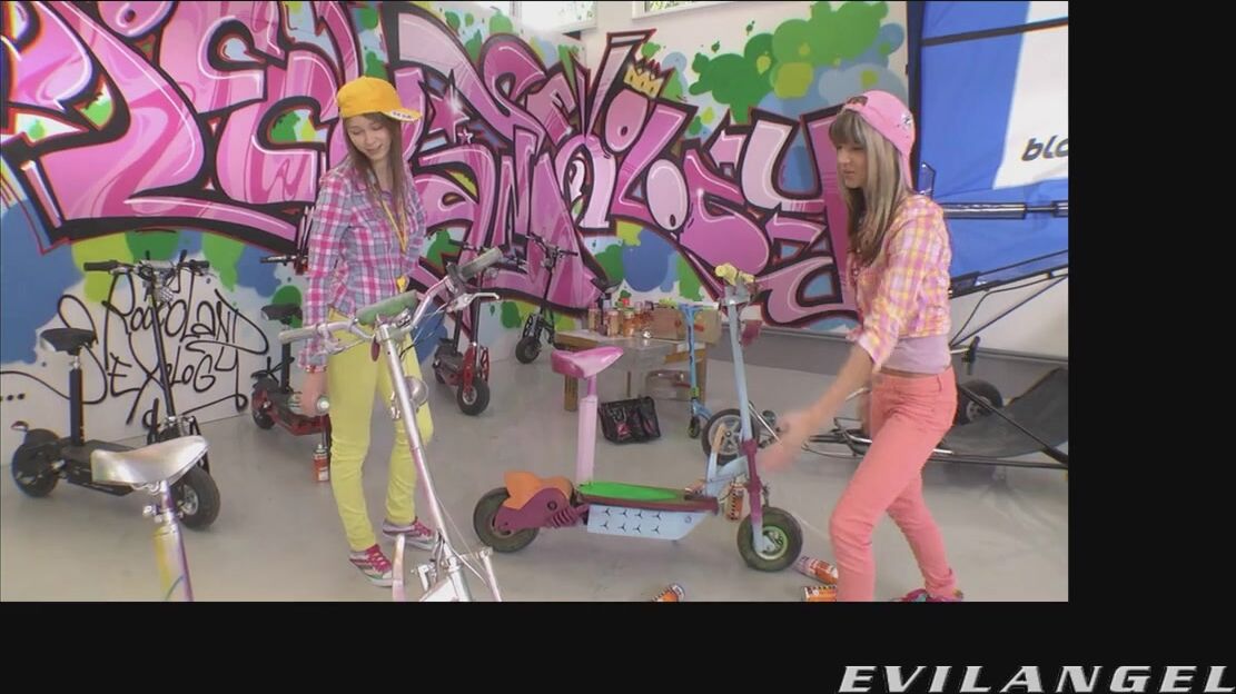 Adorable, petite Beata Undine and Gina are playing on motorized scooters when Gina's straitlaced tutor, Ian Scott, shows up for her lesson. When he agrees to teach Beata a few things, this sexy young slut hatches a sneaky plan to seduce the older gentleman. She unzips Mr. Scott's slacks and wraps her lips around his throbbing cock; Beata rides on his enormous shaft, bouncing up and down in ecstasy. Gina makes it a nasty anal threesome. Both cuties get butt-fucked until their bungholes gape; they suck cock ass-to-mouth and rim each other ... then share a gooey load of cum.