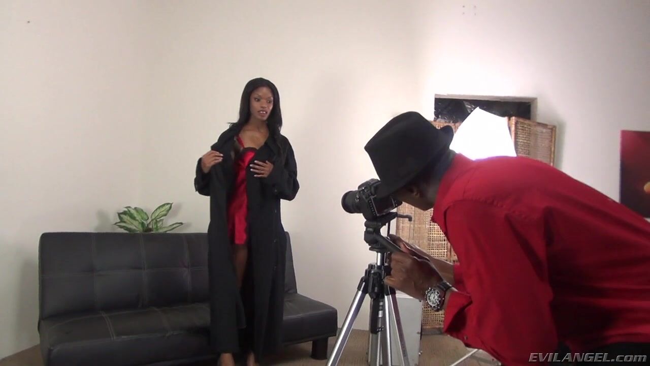 Sensuous model Ashlynn Sixxx, an all-natural, cocoa-colored, adorably gap-toothed young beauty, visits the studio of older director Sean Michaels for a sexy photo session. She bends over in her satin nighty, wiggling her soft, round ass cheeks for the camera, and spreads her creamy thighs to stroke her juicy pussy. Sean can't resist joining in, so Ashlynn wraps her luscious lips around her daddy figure's enormous black cock. She straddles his lap, lowering her steamy cunt onto his huge shaft, bouncing up and down. Thoroughly fucked, Ashlynn sucks the last drops of hot cum from his spurting rod.