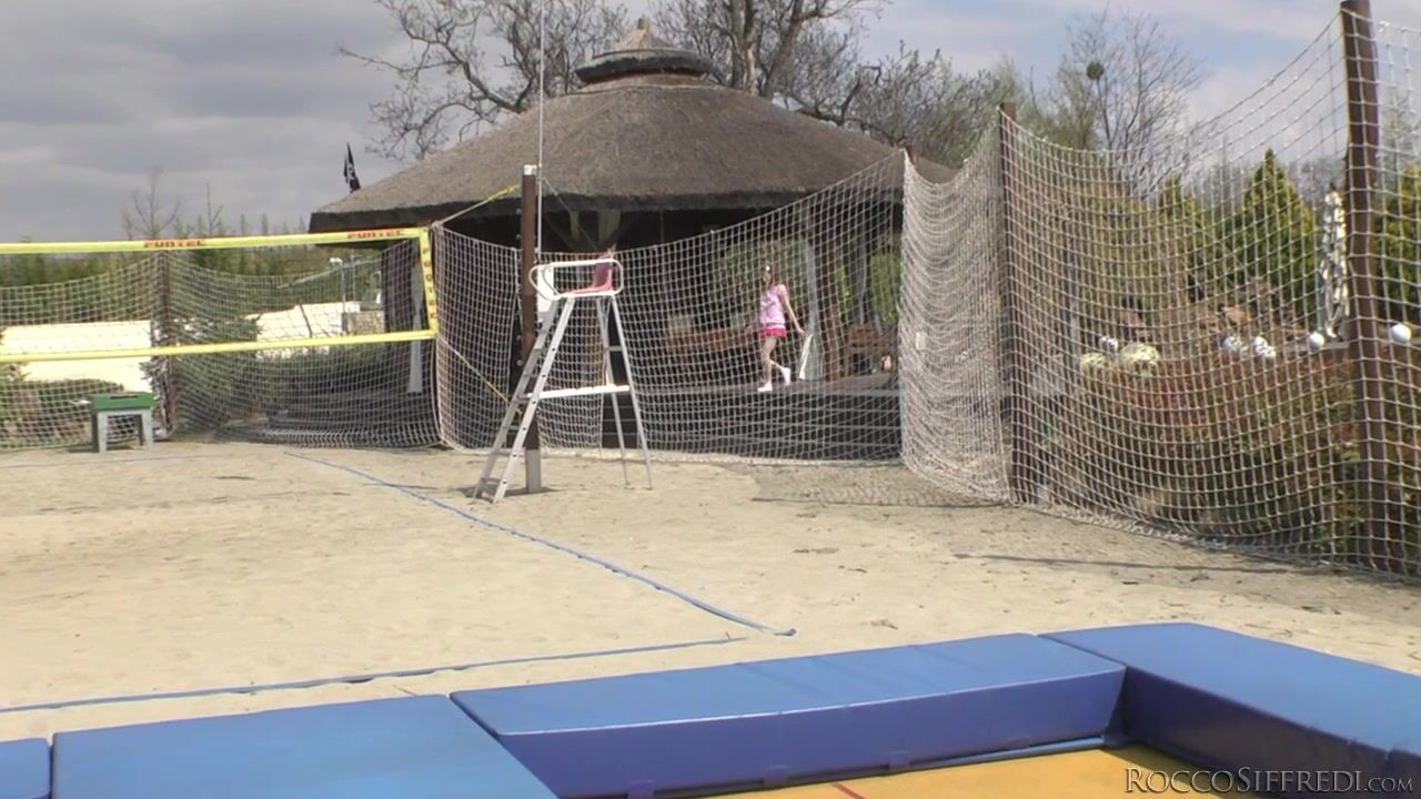 Cute, skinny Tina Blade sprains her ankle on a trampoline. Suddenly it's up to her sexy brunette friend, Mea Melone, to find help. They beg well-hung Mike Angelo for assistance, and the crafty stud soon takes Tina's mind off her troubles. He removes her sheer socks, kisses her pretty bare feet, sucks her toes and inhales their musky fragrance. He spreads Tina's soft ass cheeks and tongues her sweet butthole. She grinds on his face and rides his big cock until Mea returns for a sensuous threesome of hard-core fucking, kinky feet play, foot jobs and a shared cum shot.