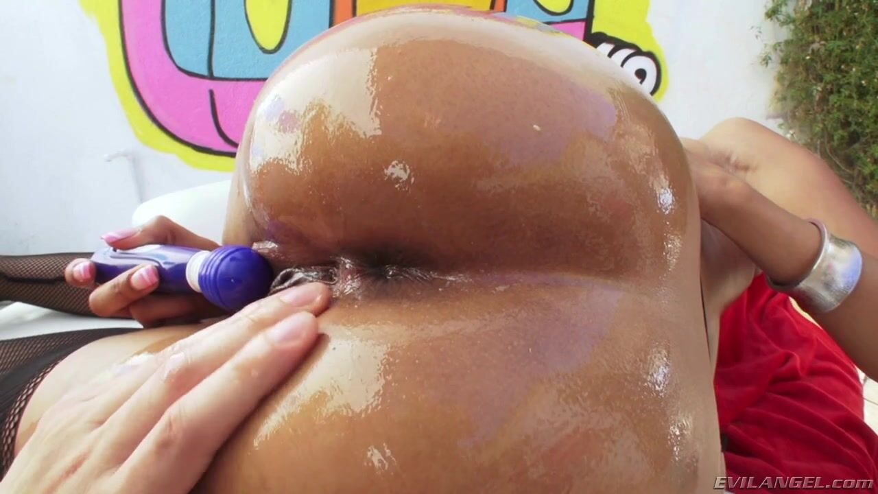 Wearing fierce high heels, fishnets and black lingerie, gorgeous ebony slut Yasmine de Leon hungers for director/performer Mike Adriano's cock in her plump ass. The pretty slut slobbers on her perfect, all-natural breasts, spreads her butt cheeks and fingers her cute anus for the camera. Mike buries his tongue in her sensitive butthole; Yasmine services the director's dork, gagging as she attempts to jam it down her throat. After lubing her ass to glistening, Mike ruthlessly invades the sultry girl's rectum as she buzzes her clit with a vibrator. Yasmine sucks dick ass-to-mouth and receives a tasty load of semen.